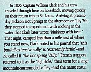 Clark's passage through. His party camped east of Big Hole Pass, not