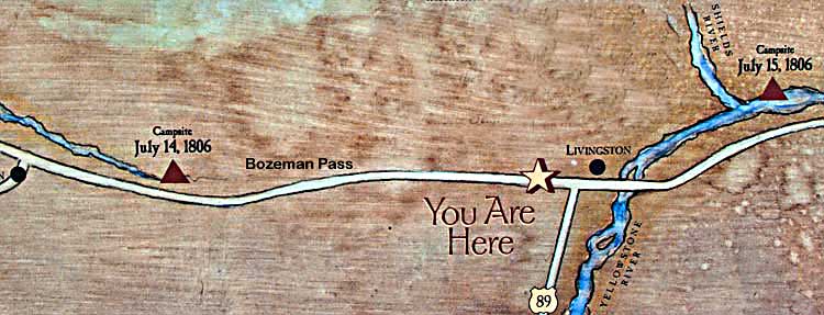 Clark made camp 7/14/06 on Kelly Creek, about 4 miles east of present day Bozeman MT.