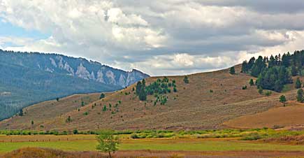 I-90 heading east. Top right; Bridger Range(l) and Gallatin Range(r)