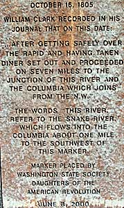 Park. The Corps passed here on October 16, 1805 and camped at the