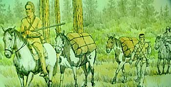 silhouettes of Lewis, Clark, and Sacajawea, with baby Jean Baptiste,