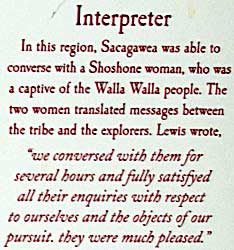 The Sacajawea Interpretive Center focuses on her role with the Corps. She was familiar with useful native plants as well as being a symbol of peace and an interpreter. Twisted Hair and Tetoharsky smoothed the Corps's way with local tribes.