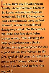 One room at the Sacajawea State Park Interpretive Center is dedicated to what happened to the Charbonneau family after the round trip journey to the Pacific Ocean. The interpretive center, right, faces the Columbia - Snake River confluence.