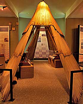 Great Plains. A walk in tule mat lodge, above, lets visitors examine