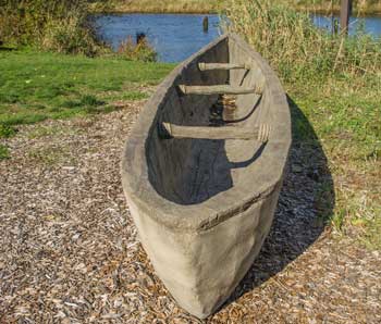 evidence of past docks. Replicas of canoe making efforts sit by the