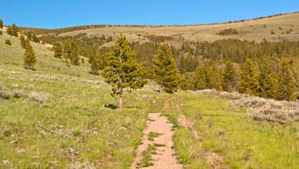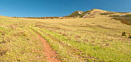 road/trail gradually climbs east toward crest, top right and above.