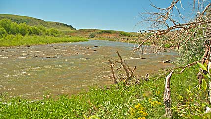 Bank Creek joins Two Medicine River to become Marias. Drive south